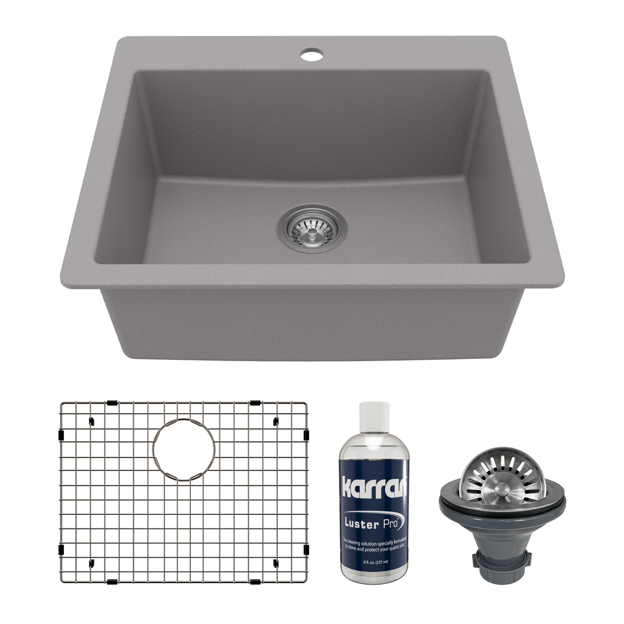 Karran QT-820 Top Mount 25" Single Bowl Quartz Kitchen Sink Kit in Grey