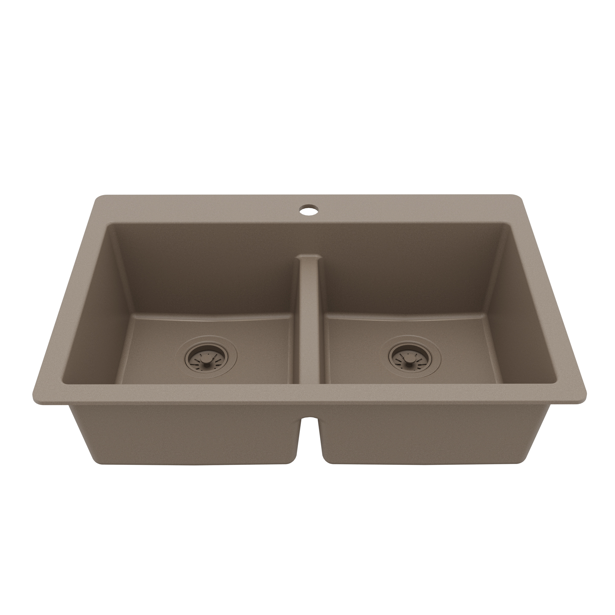 33" Top Mount Double Bowl Quartz Composite Kitchen Sink in Concrete